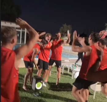 Una serata di divertimento al Mancini Park Hotel, tra esibizioni canore e scherzi: a farne le spese ĆØ stato il baby Ciurleo, finito in piscina. Lanini e Perlingieri, invece, hanno fatto coppia al microfono, mentre il gruppo dei portieri – guidato dal preparatore Antonio Chiavelli – si ĆØ esibito nella riproposizione di ‘Mi innamoro solo se’, l’inno ufficiale del Benevento, firmato Tamburo (video in basso).