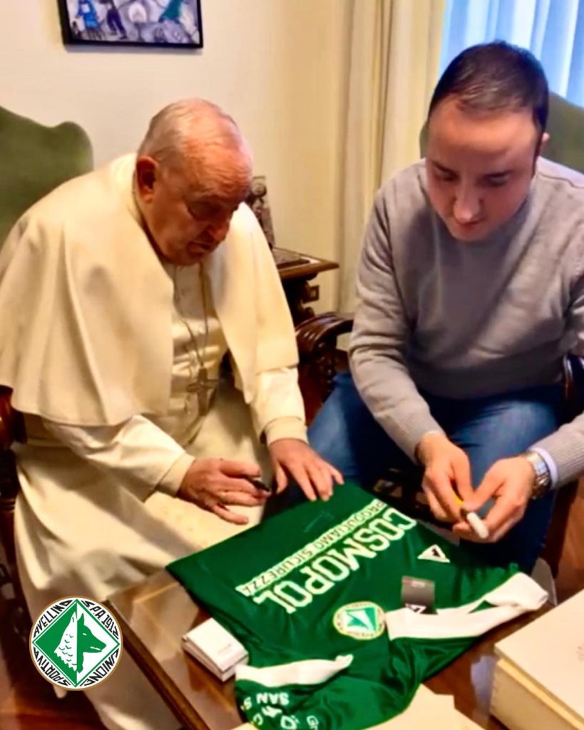 Il pontefice ha benedetto la maglia biancoverde, il patron D'Agostino: "Ci ha portato fortuna"...