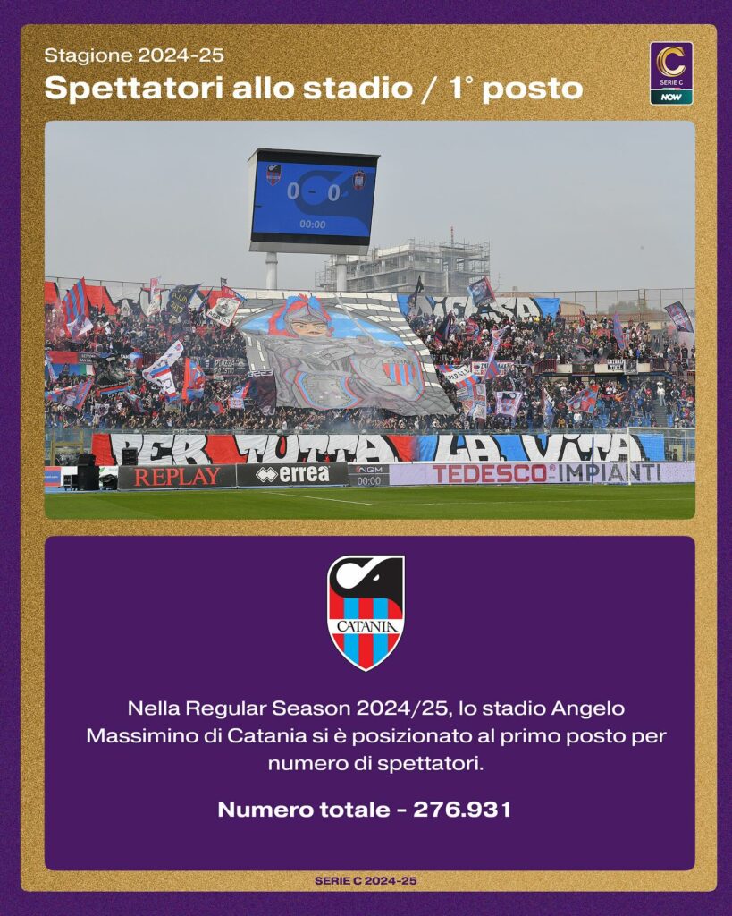 In base alle statistiche raccolte della Lega Pro sulla classifica dei tifosi in Serie C ci sono due squadre del girone C tra le tre che hanno registrato più spettatori allo stadio nel corso della stagione. Occupa il terzo posto l’Avellino che ha vinto il campionato spinto anche dalla carica dei suoi tifosi: 136.337 spettatori totali nel corso della stagione per i lupi, promossi in Serie B. Davanti all’Avellino, al secondo posto c’è invece il Vicenza. Biancorossi in lotta per la promozione in cadetteria fino alla fine: 171.719 tifosi al “Romeo Menti”, poi costretti ad arrendersi ai playoff. Più in alto di tutti il dato del Catania che centra il primo posto per distacco: cifra da 276.931 spettatori per i rossazzurri, padroni incontrastati della classifica dei tifosi della passata stagione. Calore e passione del “Massimino” hanno dominato il girone C, in una piazza che ha dimostrato di meritare riflettori migliori.