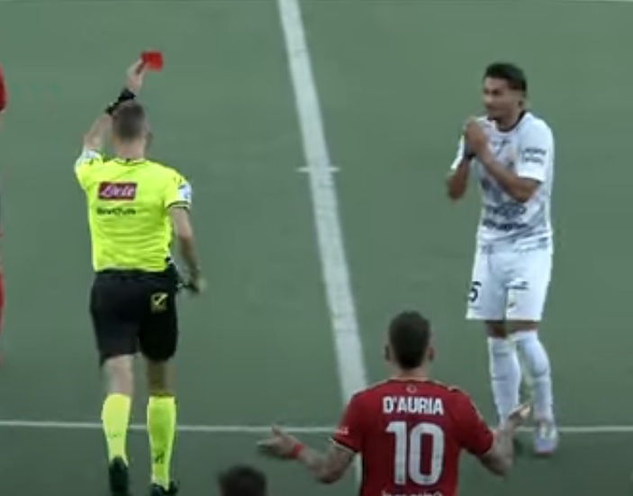 Il difensore giallorosso, espulso nel finale di partita contro il Trapani, potrebbe saltare il primo turno playoff...